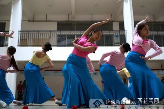 广西幼儿师范高等学校的学生在紧张的排练着舞蹈。