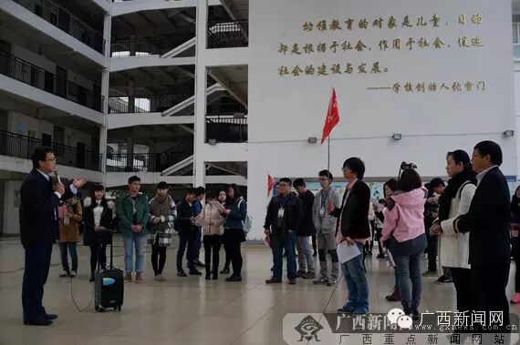 广西幼儿师范高等学校的领导在向记者们介绍该校的情况。