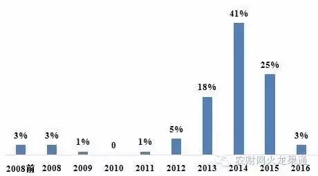 广西“百亩级火龙果园”建园年份分布表