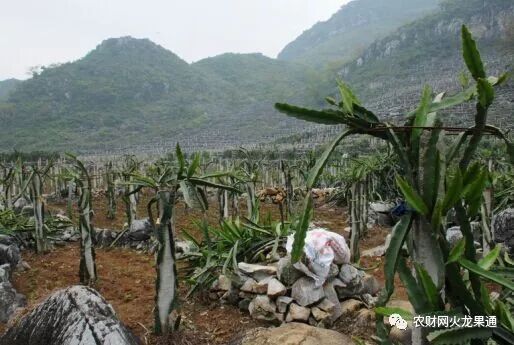 火龙果也是石山区农民脱贫致富的理想产业。在石山地不立杆种植火龙果,前两年投入约2320元/亩;平地立杆种植火龙果,前两年投入约4800元/亩。种植18个月即可挂果,每年收果10-13次,收获周期长达20年以上,经济效益高。