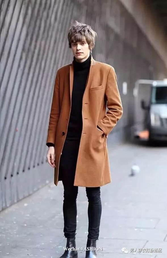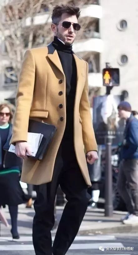 另外驼色系和黑色上下搭配的话,驼色更适合用来作为上装。千万不要用驼色的裤子去搭配黑色的外套,不然上下比例会显得比较不平衡。而且黑色的裤子还能使腿部看起来更瘦一些,从视觉上增加腿长