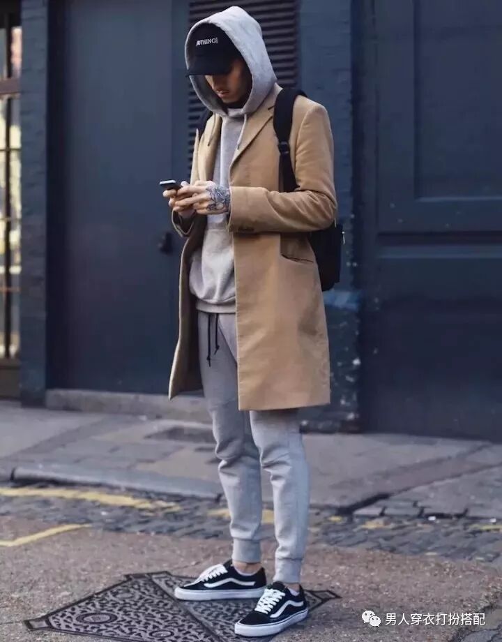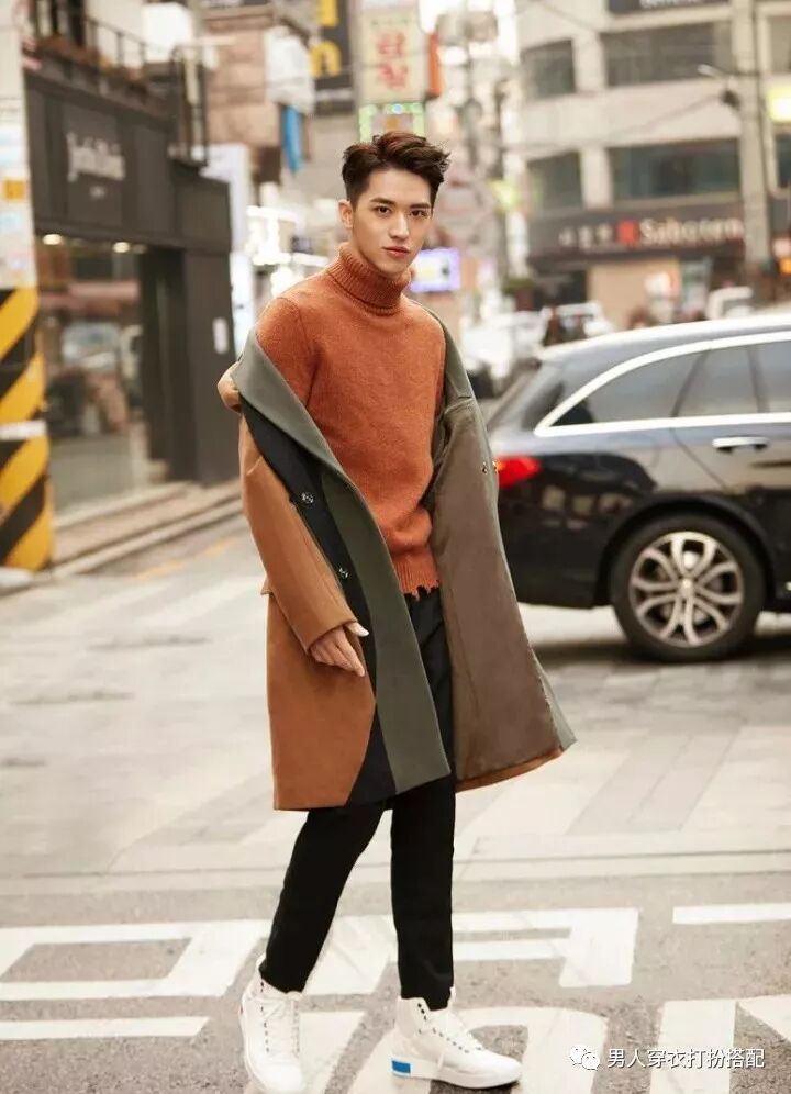 如果在冬天购买了一件驼色的外套,那白色、黑色、灰色、酒红色的搭配可能会比较适合肤色偏暗的黄黑皮男生