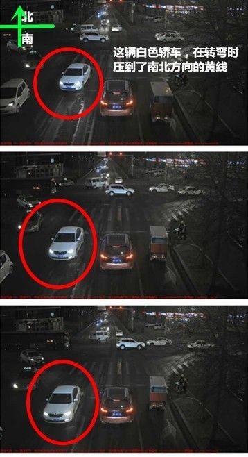 当施先生看到这三张违法照片时,明白了其中的缘由。施先生回忆到:“当晚大约8点左右,在位于东河南门外大街与站北路交叉口时,东向南行驶(即左转弯),由于天黑光线不足,故在转弯时,车辆左侧车轮占据南侧的左转弯车道通行(转弯角度太小),并压到此处黄线。”因此导致违章。
