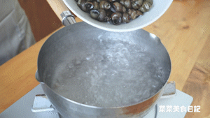 7.放入石螺,加入生抽、蚝油、柱候酱,盖上盖子焖煮20分钟
