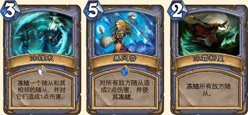 这应该是冰法最强的时代,2费霜冻新星+3费冰锥术+5费暴风雪+7费烈焰风暴形成了一个克制速攻的完美防御体系,法师们用冻结机制限制对面随从攻击,AOE清对面场,冰箱(寒冰屏障)保命,火球等单体直伤法术打脸,单纯用法术防御和输出,当时非常流行的冠军贼和超展开术士(当时还没有动物园这个概念)全部被打没,