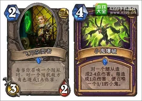 从这时开始,动物园卡组变成了不带恶魔体系的动物园和携带恶魔体系的恶魔园两种风格的卡组。动物园依然是略偏前期的卡组,而恶魔园则是略偏中期的控场卡组。而飞刀+小鬼爆破是这个时期动物园类卡组的返场核心。