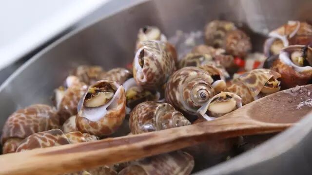 花螺(新鲜或急冻) 1公斤 / 朝天椒 2-3只 / 蒜头 4瓣 / 干葱 3粒 / 鸡汤 500毫升