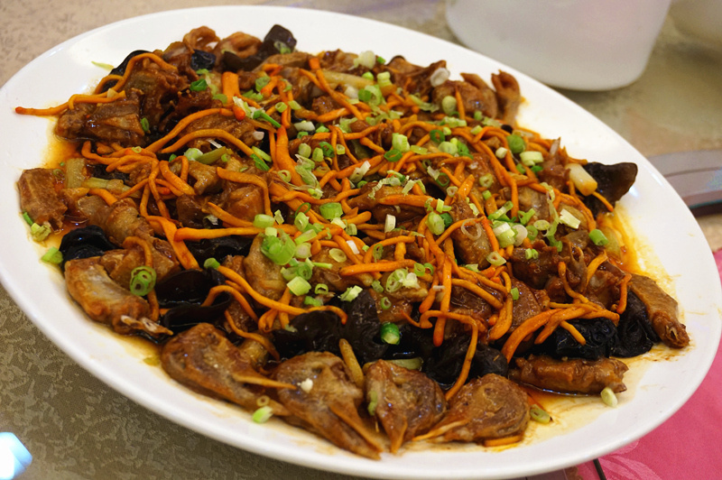 然后呢味係“鲜虫草蒸野生石燕”,价钱段只计。有人听见係“野味”就流晒口水。“石燕”係一种雀鸟,同乳鸽差唔多大只。加上“鲜虫草花”(同我哋平时食开嘅干虫草花有D唔同)、黑木耳嘅搭配,好鲜味。