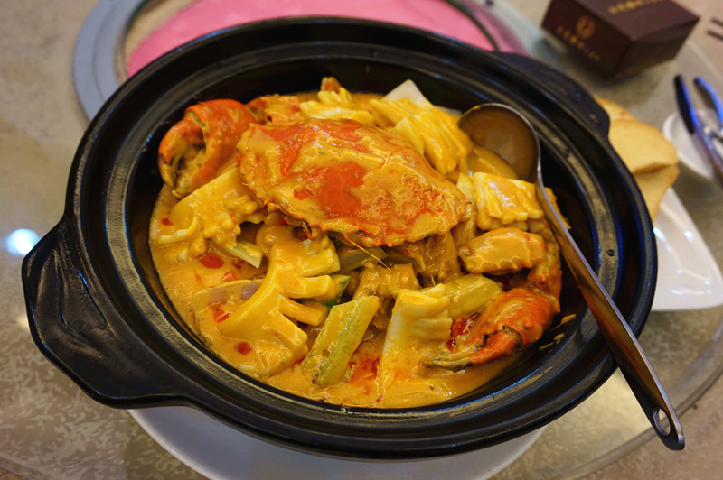 阿“老细”係番禺地胆。佢介绍话“古堤雅轩”最出名嘅係“咖喱”,每位台都必点。我哋当然要比机会“老细”豪一豪佢,点埋呢个¥258嘅“招牌咖喱鸡煲蟹”!
