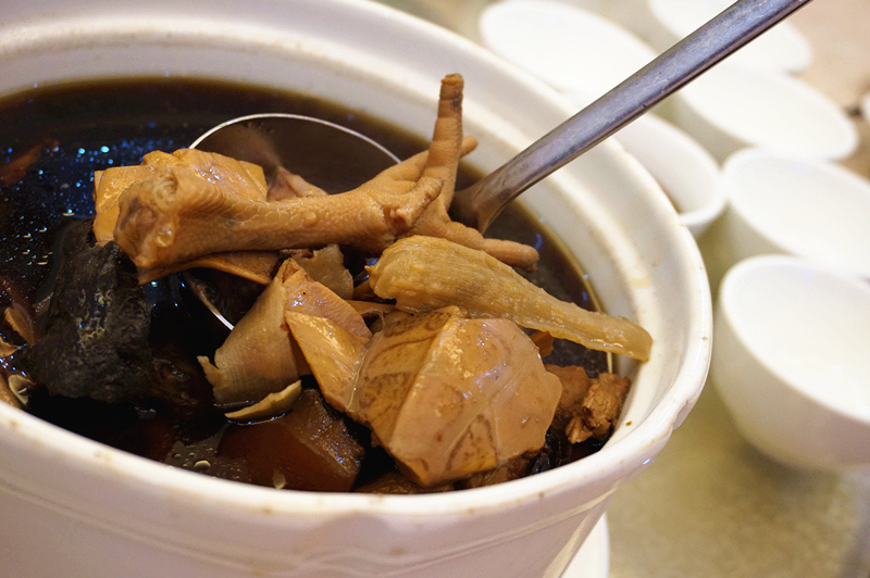 寻晚有“老细”请客,车我哋去番禺“古堤雅轩”劲食“鲍鱼扇花螺一品扇鸡煲”。¥228一煲,里面有半斤花螺,半斤扇鸡,同埋五只拳头咁大嘅大连鲍。鲍鱼大只不在话下,重点係够、干、净!自己都买过鲍鱼返屋企煮,知道要刷得干净好有难度。问部长点解只只鲍鱼都可以咁“白雪雪”,部长话係将肉同壳拆开,分别刷洗,要花唔少精力同时间。真係五星级都冇佢咁干净。