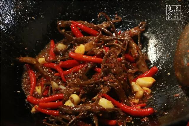 “ 龙记微卤 ”私家小厨的鸭舌口感十足,他们首先会先将鸭舌卤制一遍入味,然后加入辣椒、蒜等大火爆炒。
