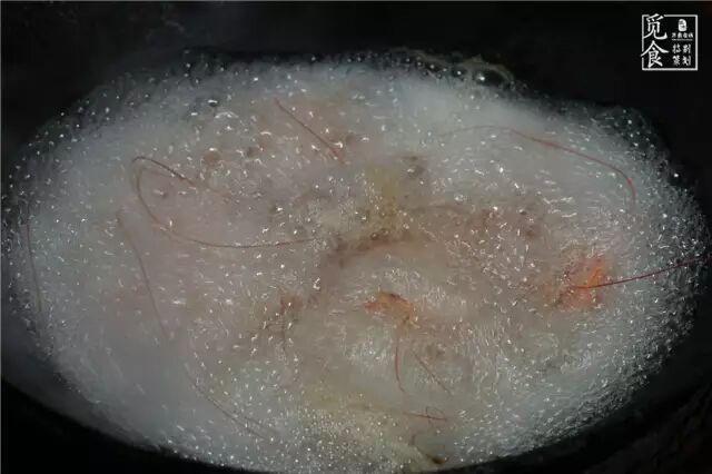所谓白灼,就是以煮滚的水或汤,将生的食物烫熟。白灼这种烹饪的做法,主要是为了突出食材的清鲜。“龙记”的基围虾都是鲜活的,经过此道工序之后保持了虾原有鲜味。