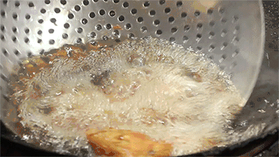 其实,虾饼除了做的方法,好吃的关键还是在于炸,6成油温浸炸到油温升至7成,表面金黄酥脆就可。