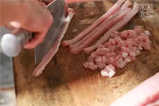 老板告诉小编,虾饼的制作过程就比较费时复杂了。首先,鲜虾去头去皮、去虾线,然后剁碎,把绰过水的胡萝卜和洋葱剁碎,加鸡蛋,适量盐、胡椒粉等佐料。最后加入面粉,顺着一个方向搅打上劲。