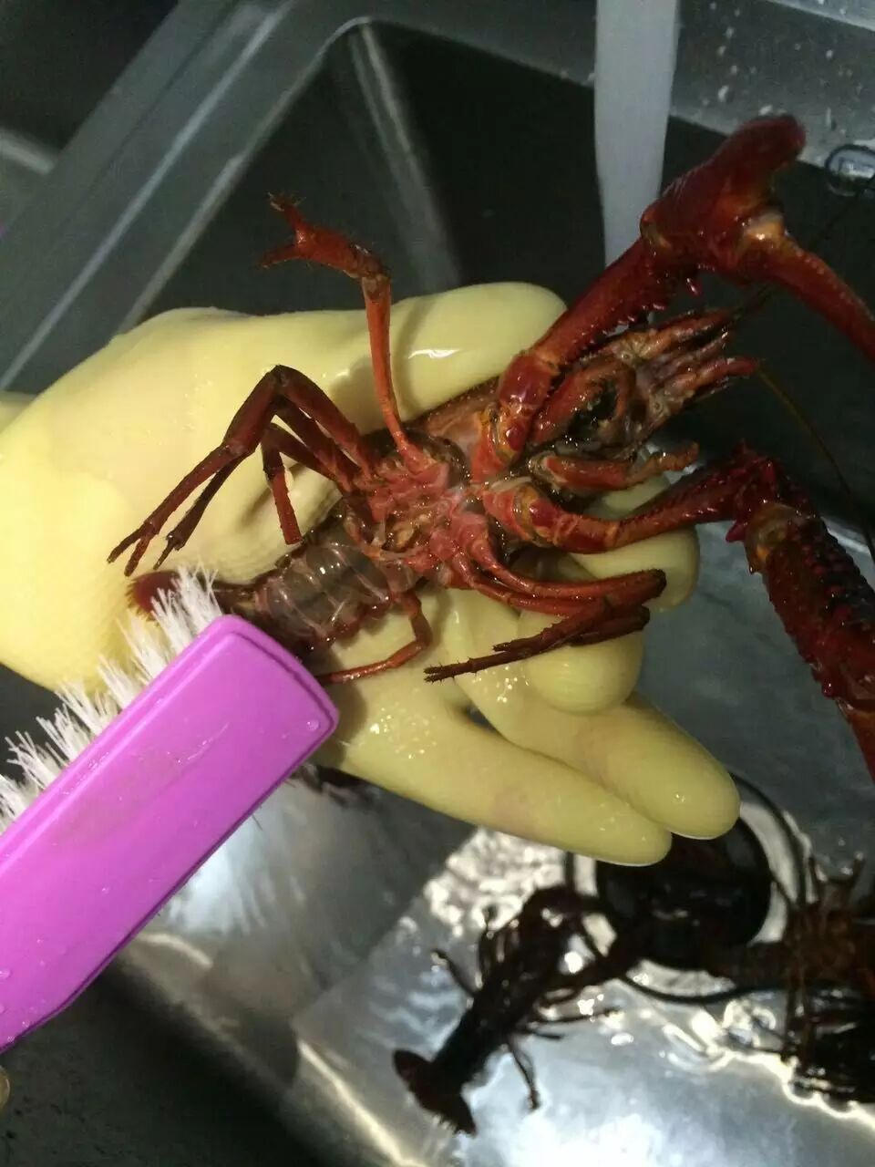 进去的时候恰有几位员工在进行小龙虾的清理,重要的是,他家所有小龙虾都必须逐只单个的刷洗,在流动的清水中反复一只一只的刷洗小龙虾,工程量可不小啊!看来为了确保食客有一个好的味觉体验,老板也是拼了。