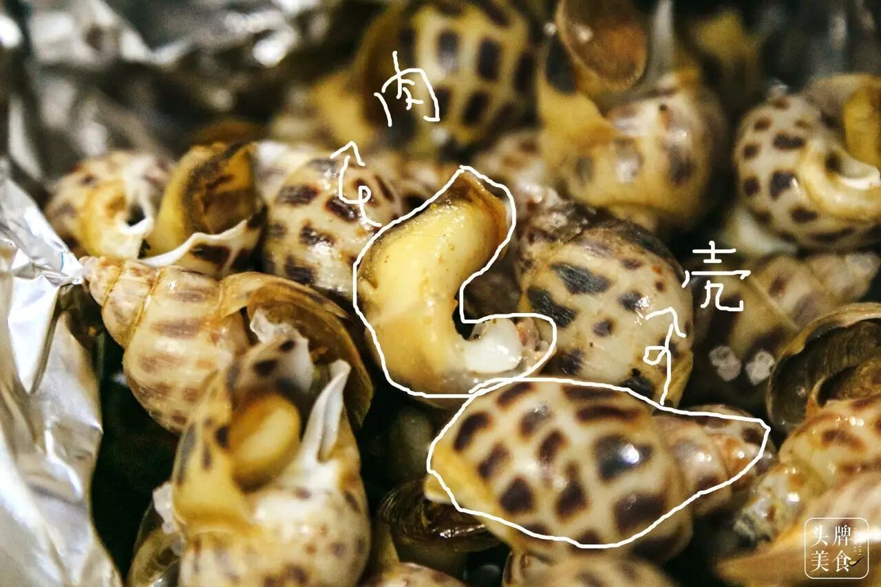 粗盐烘烤出来的花螺,好吃到爆!田螺的个头相当均匀,肉几乎塞满了整壳,要赶上外壳的大小了!