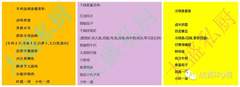 朱师傅的家宴套餐,从几百到上千都有,只要报人数,朱师傅就给你安排,比如580元的冷锅鱼、羊肉汤、干锅特色套餐,来看菜单、配菜丰富,性价比超高!
