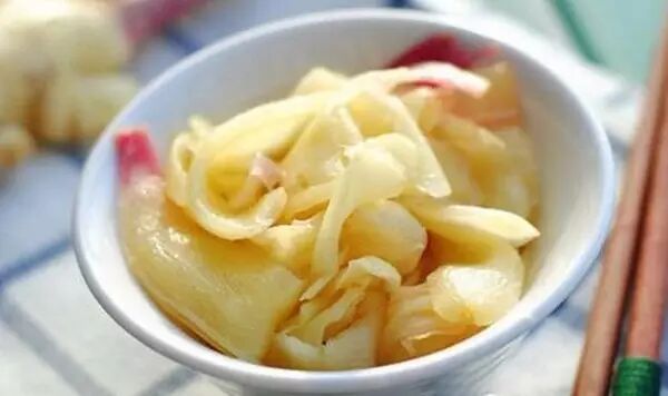 糖醋姜片是高安家家户户喜爱的吃食,有杀菌解毒,延年益寿等功效,做法是先将莱姜表面洗干净(不用刮皮,姜皮的功效更强),切成薄片,用盐抓匀腌制20分钟、将米醋和冰糖以及枸杞放入锅中加热,使冰糖溶化,然后盛入可密封的玻璃容器晾凉待用。将其水分攥干待用,最后攥干水分的姜片放入姜醋汁中密封腌制1天即可,腌制时间越长越入味。