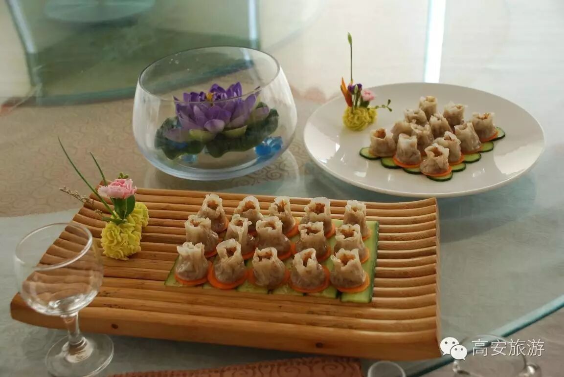 烧麦虽然各地都有,但高安烧麦风味特色。用面粉加水搓碾成薄皮,然后以剥骨肉剁成肉酱加白糖、芝麻为馅,用薄皮包馅,包好后状如石榴,皮似水晶,放入小圆笼中用强火蒸10分钟左右即熟。带热出笼,油亮诱人,食之咸中带甜,满口流香。