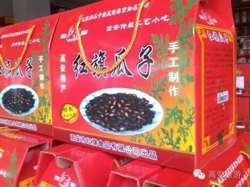 “红旗牌五香瓜子”系高安红旗商店精选西瓜子、甘草、精碘盐、天然香料等加工而成,口感上佳,风味独特,历史悠久,驰名全国。由于是水煮瓜子,所以不会上火,是馈赠亲友之佳品。