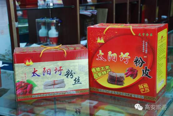 主产地太阳镇,以当地特色红薯淀粉加工制作而成。食用价值高,被誉为“长寿食品”。经科学分析,长期食用红薯淀粉具有抗癌、美容、减肥等保健功效,粉丝细嫩柔软、粗细均匀、绿莹晶亮、润滑可口。