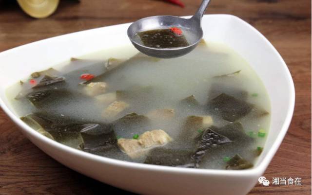 海带与猪排骨炖煮,基本属于清汤,海带还能稀释猪骨一部分油脂,加了海带的猪骨汤里,油花明显的少了很多。所示 常吃海带还有利于降脂减肥哦。