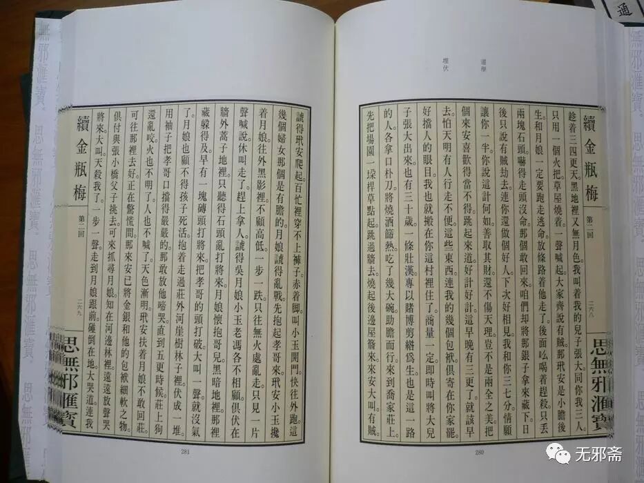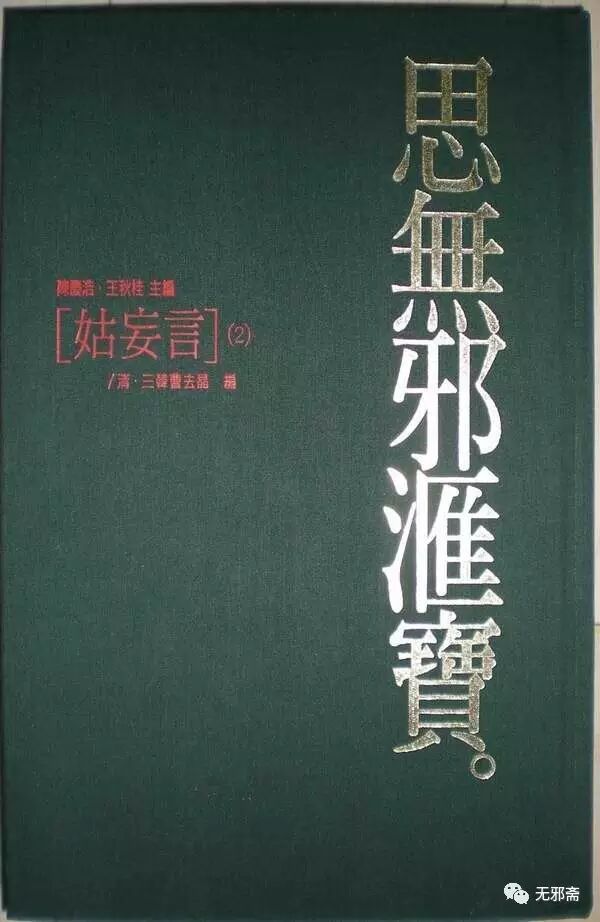 【无邪斋按】《思无邪汇宝》台湾大英百科股份有限公司、巨英国际股份有限公司自1994年9月开始陆续出版,至1997年8月全部出齐。收录明清四十五种,凡三十四册。另有《思无邪外编》二册,收录相关文献十一种。陈庆浩、王秋桂主编,聘请国际著名小说研究专家二十余人担任编辑顾问与校阅,陈益源执行编辑。法国国家科学研究中心、台湾大英百科股份有限公司合作出版。原计划出版一个《》系列,但因故取消。其中有《》六册(版已制好未付印)、《》三册与《三》二册,早期曾少量印制,流入市场。这套丛书的装帧特点是16开精装,绿色丝光棉封面。正文有乌丝栏版框,加淡黄的底色套印。另外,从前24册中选取《浓情快史》《痴婆子传》、《玉闺红》三种单独出版过《女性三大奇书》两册。《》曾经出过简装本1函4册,大32开平装。