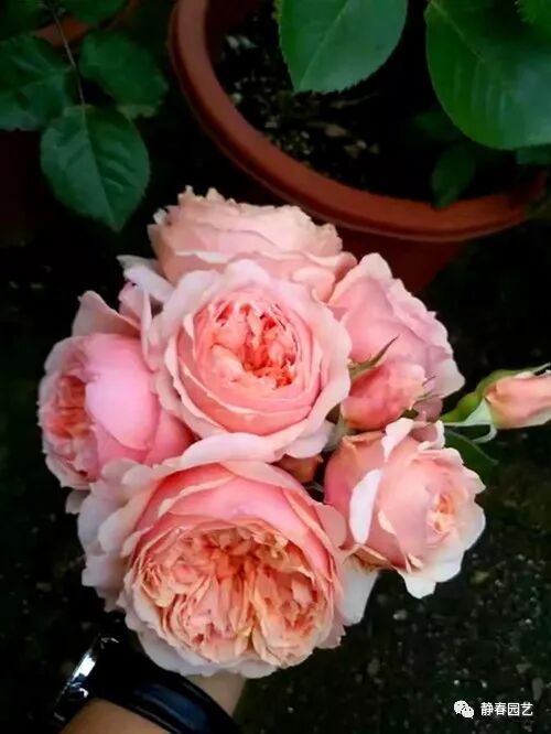 从相识到种植,从香草,草本类植物到欧洲月季,铁线莲,绣球,深深的被她们美好的生命吸引。在还是种植新手时,对简单易养芳香又可食用的香草青睐有佳,直到欧洲月季来袭,藤本月季的粉色龙沙宝石,红龙,蓝色风暴,真宙,托马斯,瑞典女王,威基伍德,火龙果,,法国月季,日本月季,英国月季,等等超多品种,美得绚烂多姿,也为花艺的展示增添了更多的可能性。