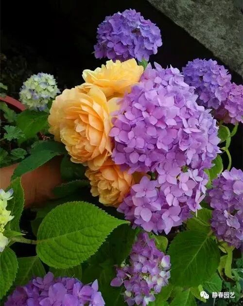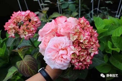 月季与绣球的随意搭配,是我认识到花艺的小雏形。