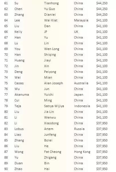 不知道什么时候开始,节奏也越来越快,三家全推的情况时有发生:第23级别,盲注12000/24000/4000,这一手,来自印度的玩家Goel Apoorva在按钮位加注到5万,小盲位是来自中国的Li Long Xiang,他看了手牌之后直接短码全推31.5万,轮到大盲位动作,也是来自中国的玩家Wen Zhen,他在小盲位全推之后,也选择全推46.4万!问题回到印度玩家这里,但他似乎不需要考虑,选择了秒跟前面两人的all-in!三家全推!印度玩家计分牌最多!是印度玩家清掉两人还是另有结果?之后印度玩家秀出Q♣Q♥,Li Long Xiang是A♣K♠,Wen Zhen也是A♥K♦,两手AK对上一对Q!翻牌:K♥3♠9♣,目前只有Q才能拯救印度玩家,转牌:4♠,没了么?河牌:9♦!AK还是将它的优势发挥得尽致淋漓啊!最终Wen Zhen拿下大底池,而Li Long Xiang拿下边pot,印度玩家Goel Apoorva则一语不发。