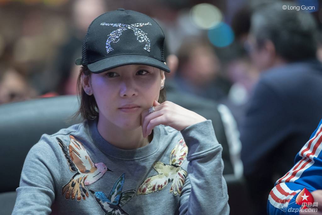 随着比赛不断地进行,场上气氛越来越压抑,到第22级别,场上最后一名美女玩家也遗憾离场:第22级别,盲注10000/20000/3000,翻牌前,Alan King Lun Lau在CO位limp进池,弃牌到BB位的女玩家聂玲玲,她短码选择了全下,Alan King Lun Lau选择了跟注,Alan King Lun Lau:Q♠K♥,聂玲玲:5♥K♦,牌面发出:Q♣J♠2♥6♦8♥,聂玲玲遭到淘汰获得第48名,目前Alan King Lun Lau码量大概有145万左右。
