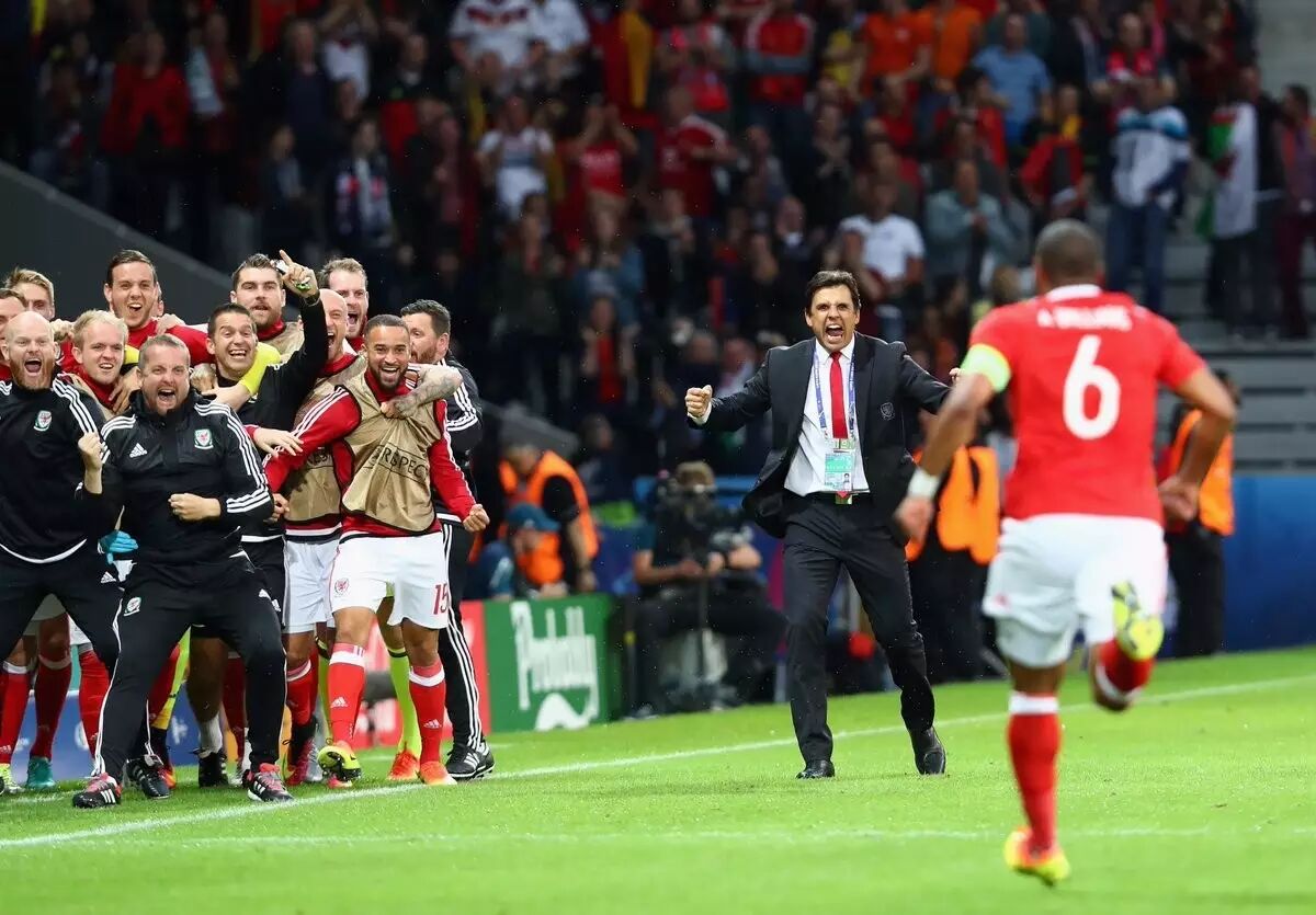 威尔士在获胜之后摆出一个心形的庆祝队形,与此同时他们复制了冰岛在晋级后与球迷共同庆祝的场景,感谢球迷能够跨越英吉利海峡来到法国为球队加油。