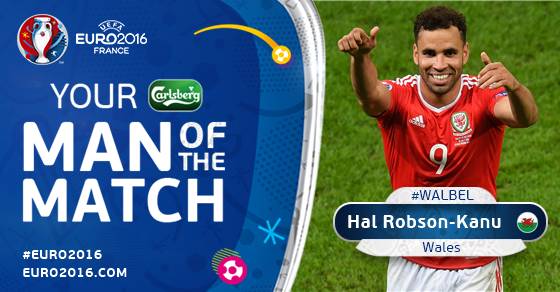 罗布森·卡努在下半时开场仅5分钟就接拉姆齐的传球,在禁区内从容演绎“克鲁伊夫转身”,施射破网,帮助威尔士将比分逆转。这是他本届杯赛的第2球,上一球是在小组赛首战斯洛伐克时,他第71分钟替补登场,攻进绝杀,帮助球队2比1取得首胜。而本届杯赛之前,他在国家队也只有2个进球。