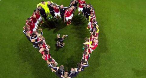 主裁判吹响完场哨,威尔士全队忘情相拥、庆祝,这一晚他们又一次创造新的历史!
