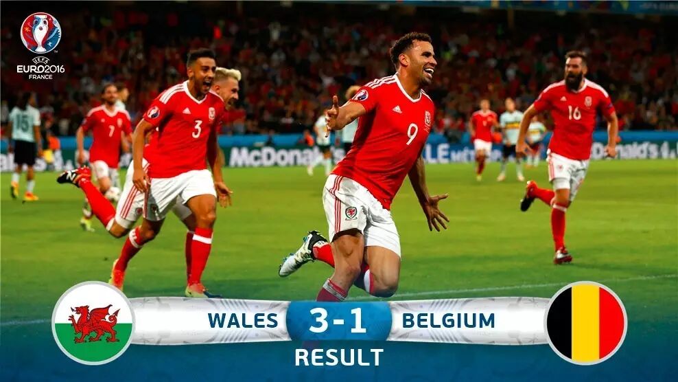 比利时再次倒在大赛8强,相比于2年前在巴西世界杯受阻于梅西领衔的阿根廷,这次出局更冷门,不仅在90分钟内被击倒,而且被击倒3次。对手威尔士则是欧洲杯的初哥,是欧洲杯史上第3家第一次亮相即进4强的新军,前两家是1984的葡萄牙和1992的瑞典。