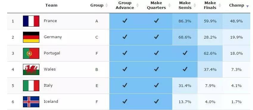 本届欧洲杯只有冰岛和威尔士每场都有进球,威尔士是本届上半时进球最多的球队(5)。