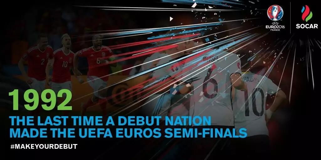 威尔士是1992年瑞典之后,首支首次参赛就打进欧洲杯4强的球队。