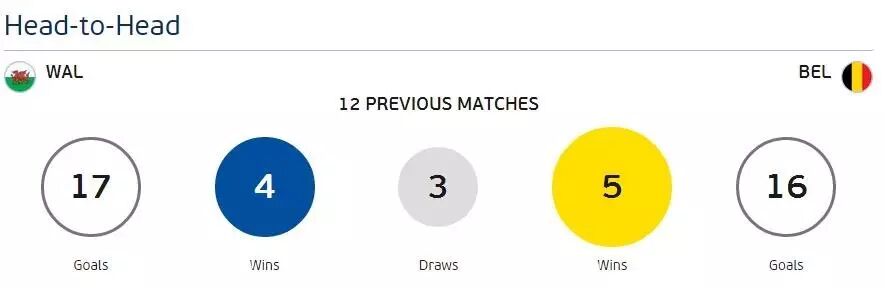 两队此前交手12次,比利时5胜3平4负,进16球失17球。