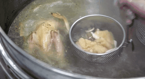 再看看烫食物的大汤锅,里面除了有老板告诉我的猪骨,我可是还亲眼见到了整只鸡翻滚在汤里,可谓真材实料有保证~