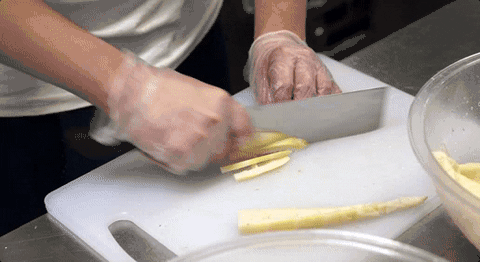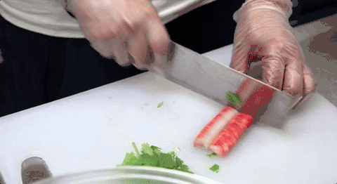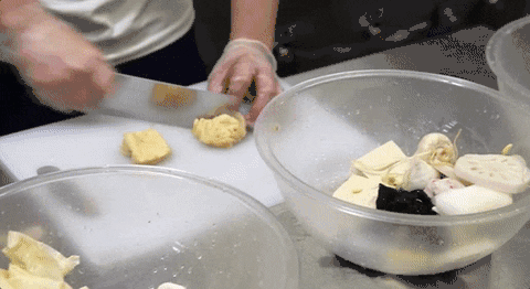 我就屁颠屁颠跟着老板进了后厨,就是想看看世间麻辣烫千百家,这家麻辣烫有啥不一样的~重点在于人。老板长得帅不说(这个我怕侵权没拍照,你们自己去店里看哦),做事的认真细心劲儿也是一流的~只见他,先把大块的食材都一样样耐心且娴熟的切成小份~