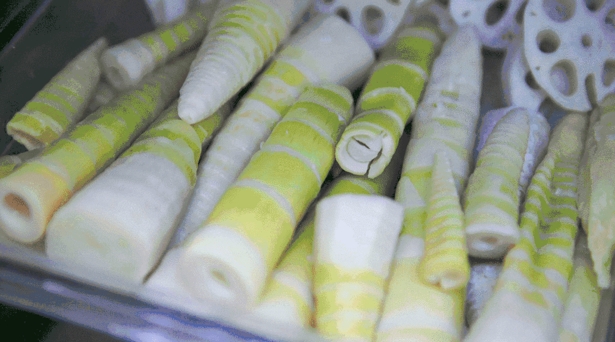 除了绿叶菜,咱们还能从冰柜中找到笋子,木耳,冬瓜,金针菜,藕片,黄豆芽等较为富有质感的素菜~