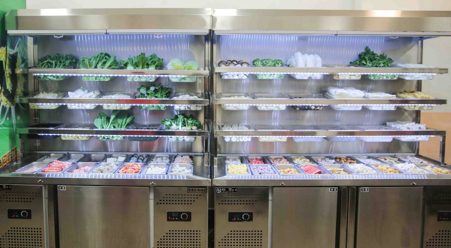 上面整齐摆放了琳琅满目上下各四层的新鲜食材~叫人眼花缭乱~