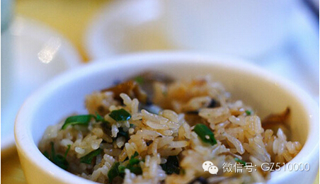 ↑黄鳝饭:香米和着鳝段同煲,米粒韧鳝段紧实,在酱油、猪油、葱花的激化下,粒粒米香在口中弥漫留存。