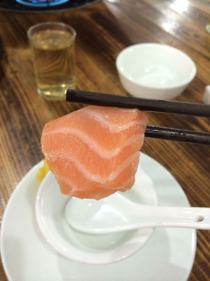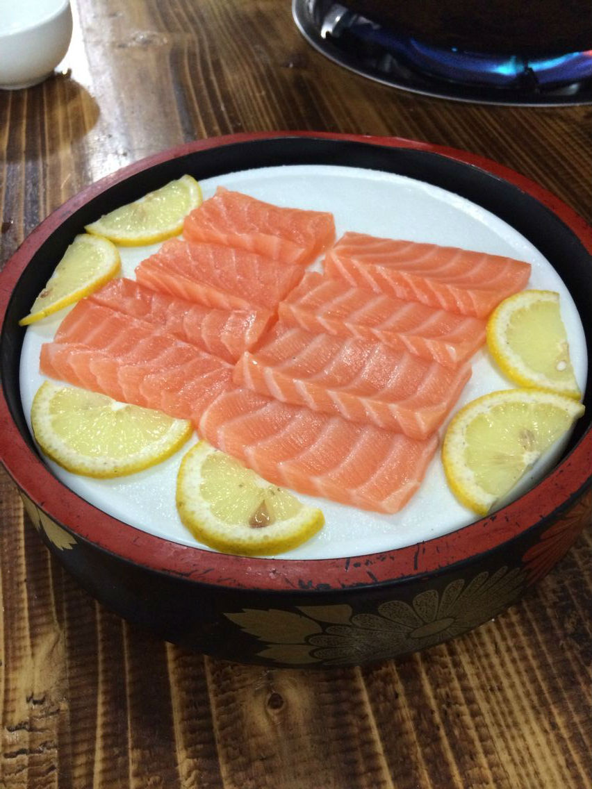 头盘的话,三文鱼君当然是跑不掉啦!5个人,2分钟不到秒杀2盘,是一定的~