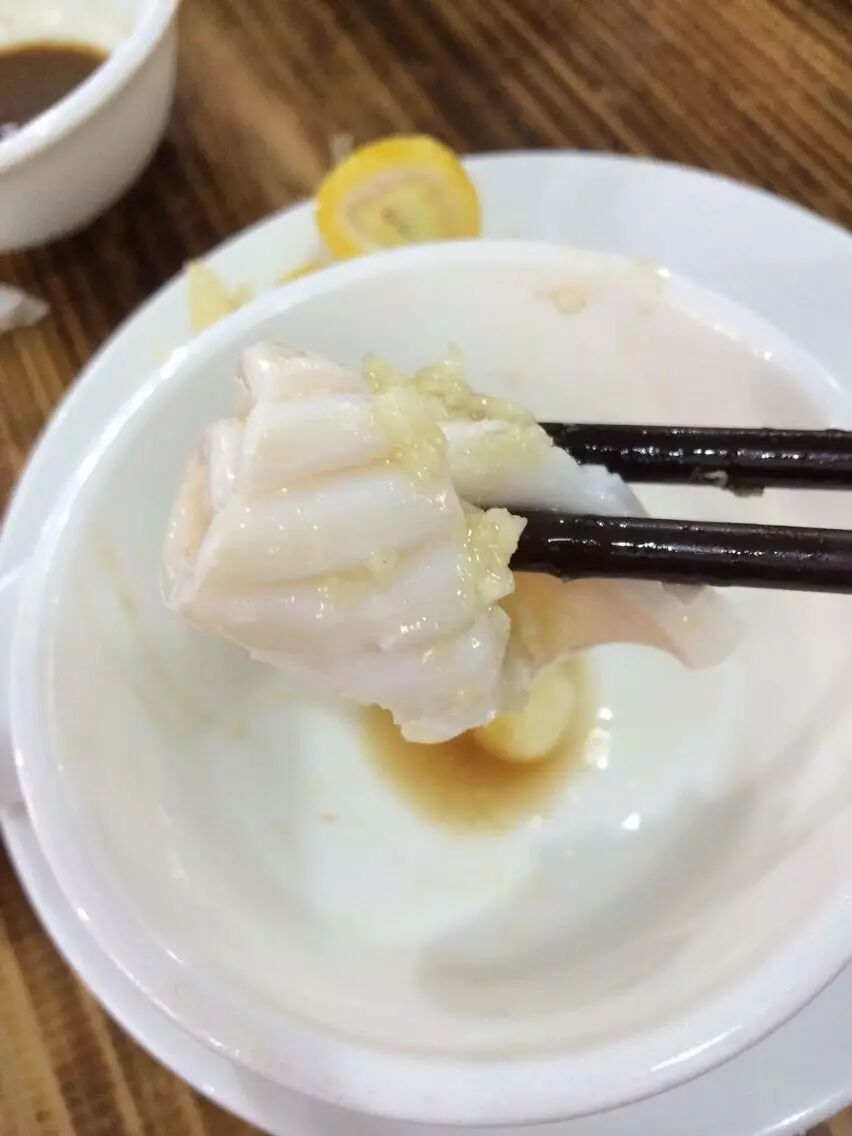 5、白灼鱿鱼仔,火候和时间刚好,爽脆清甜,配上蒜蓉酱更香口。
