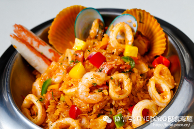 西班牙海鲜炒饭是欧洲人最喜爱美食之一,发源地是瓦伦西亚,主要食材是各种鲜活海鲜,细长型的米粒,葡萄酒般的酒红色藏红花。它,亦菜亦饭,它,味道鲜美,它,五颜六色,为这多雨的春季,增添了一抹迷人的色彩。