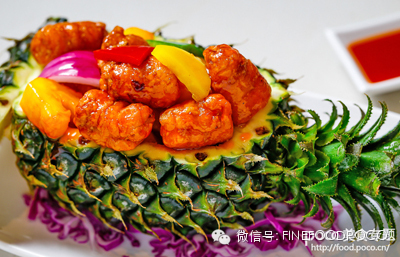 一层肥一层瘦的梅花肉,切成薄片,包裹住晶莹剔透的马蹄,口感不再是外脆内软,而是外酥内脆,肥而不腻,酸甜的糖醋还特意添加了冰梅酱,令酸度提升。如此咕噜肉不能独食,必定要向食客坦诚相告,才不致令美女发胖。