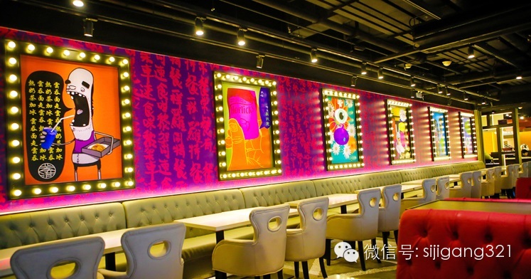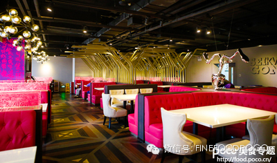 走进餐厅,延续富邦店紫色元素,搭配亮眼的玫红和纯白色,金属质感错落有致,舒适悠闲之余,真有种在‘夜场’K歌和跳舞的错觉。纯白四方桌、皮质沙发到挂饰乃至吊灯每一个细节,是设计师Bosco Lam将当地餐饮文化融入到现代艺术中的完美风格。
