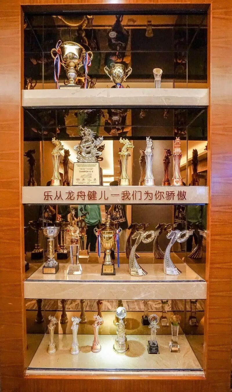 ▲摆放在乐从荔豪园的乐从龙舟健儿的奖杯▲