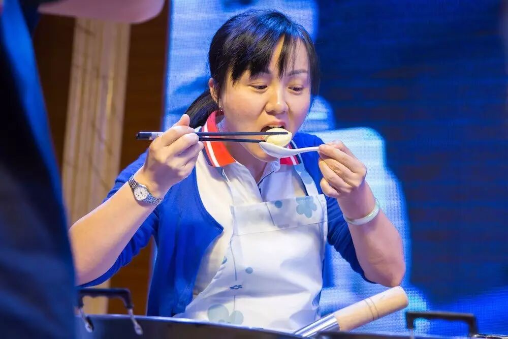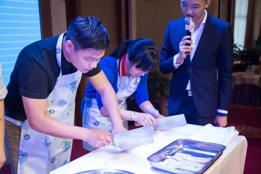 ▼观众学习如何制作乐从鱼腐▼